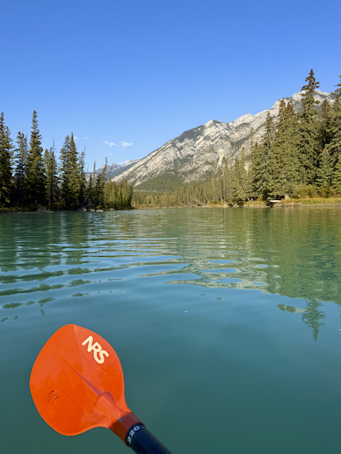 Hiking from otherworldly Lake Louise to the Little Agnes Teahouse where we had tea and a delicious lunch before walking up the steep trail to the Little BeeHive was another highlight. There was a group kayaking event we joined where we portaged over an abandoned beaver dam (rather challenging) and then another extraordinary 30-mile ride around Lake Minnewanka. Our final hike was to Lake Helen (another steep walk with over 1500 of elevation gain). Each day was full and involved time in nature. The weather was so warm we had to buy t-shirts.